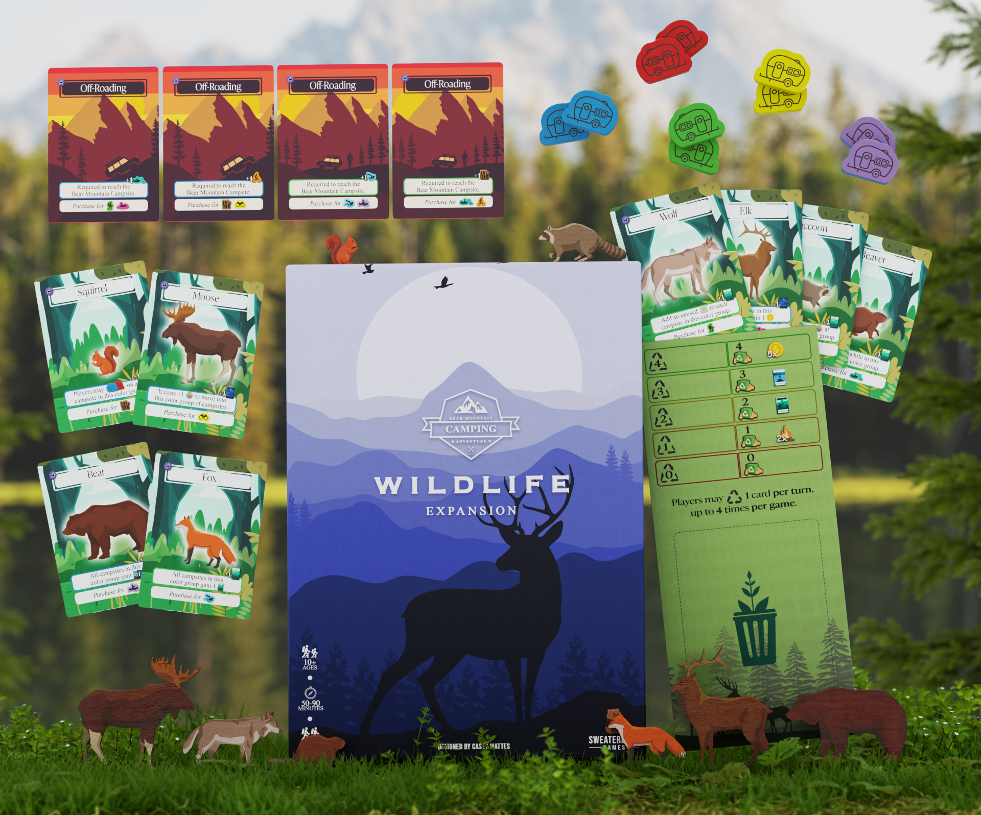 Adds a 5th player option as well as off-road tires, water bottles, additional campsite tiles, camping activities, and more!